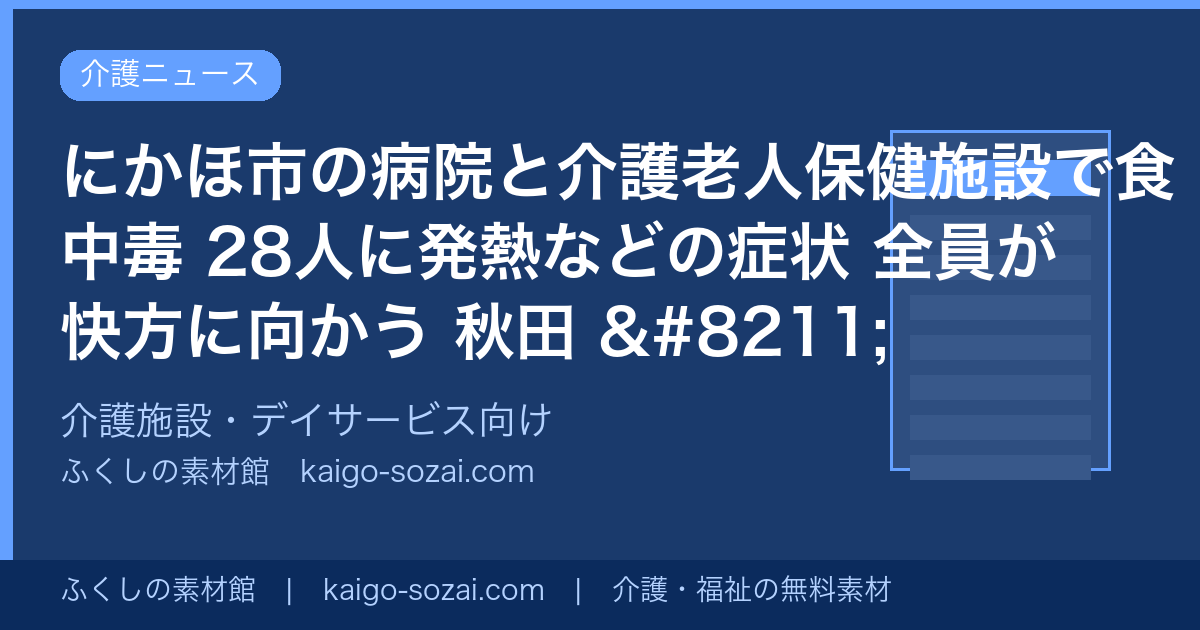 - にかほ市の病院と介護老人保健施設で食中毒 28人に発熱などの症状 全員が快方に向かう 秋田 news.ntv.co.jp