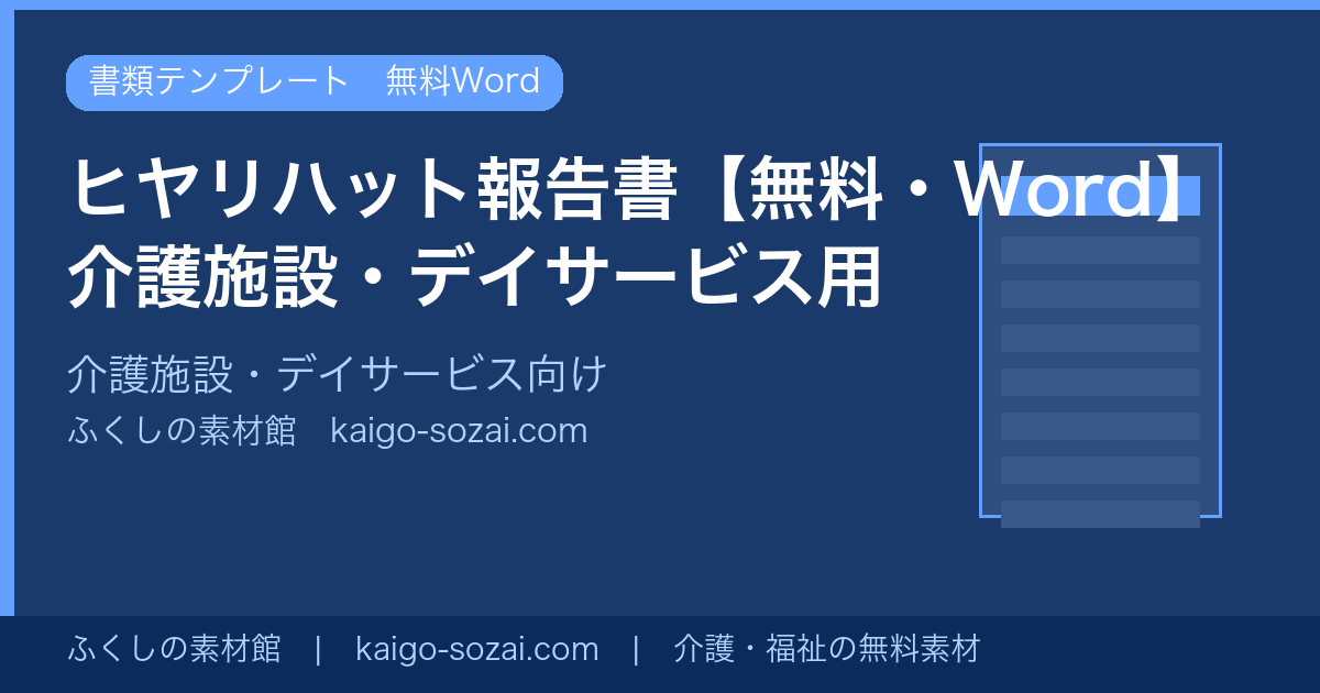 介護施設・デイサービスで使えるヒヤリハット報告書のWordテンプレートを無料配布しています。ダウンロードしてすぐに使える実践的なフォーマットです。