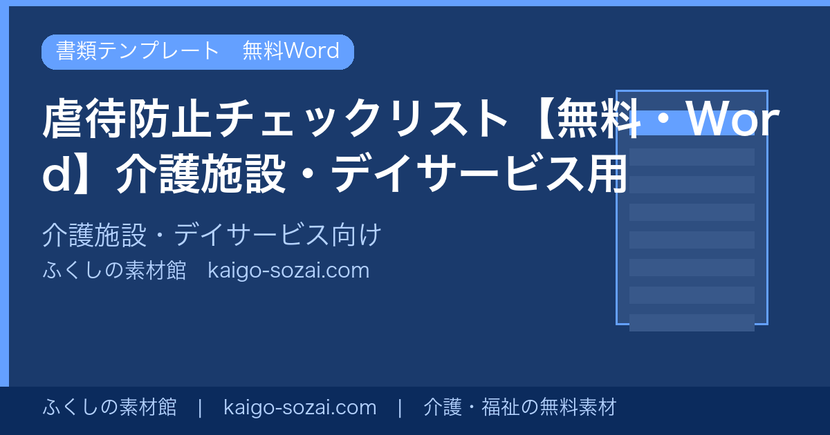 介護施設・デイサービスで使える虐待防止チェックリストのWordテンプレートを無料配布しています。ダウンロードしてすぐに使える実践的なフォーマットです。