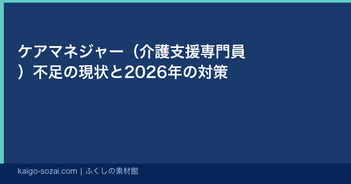 ケアマネジャー(介護支援専門員)の不足が深刻化しています。試験受験者数の減少・現役ケアマネの離職・高齢化が重なり、地域によっては新規利用者の受け入れが困難な居宅介護支援事業所も出てきています。本記事で現状と対策を整理します。