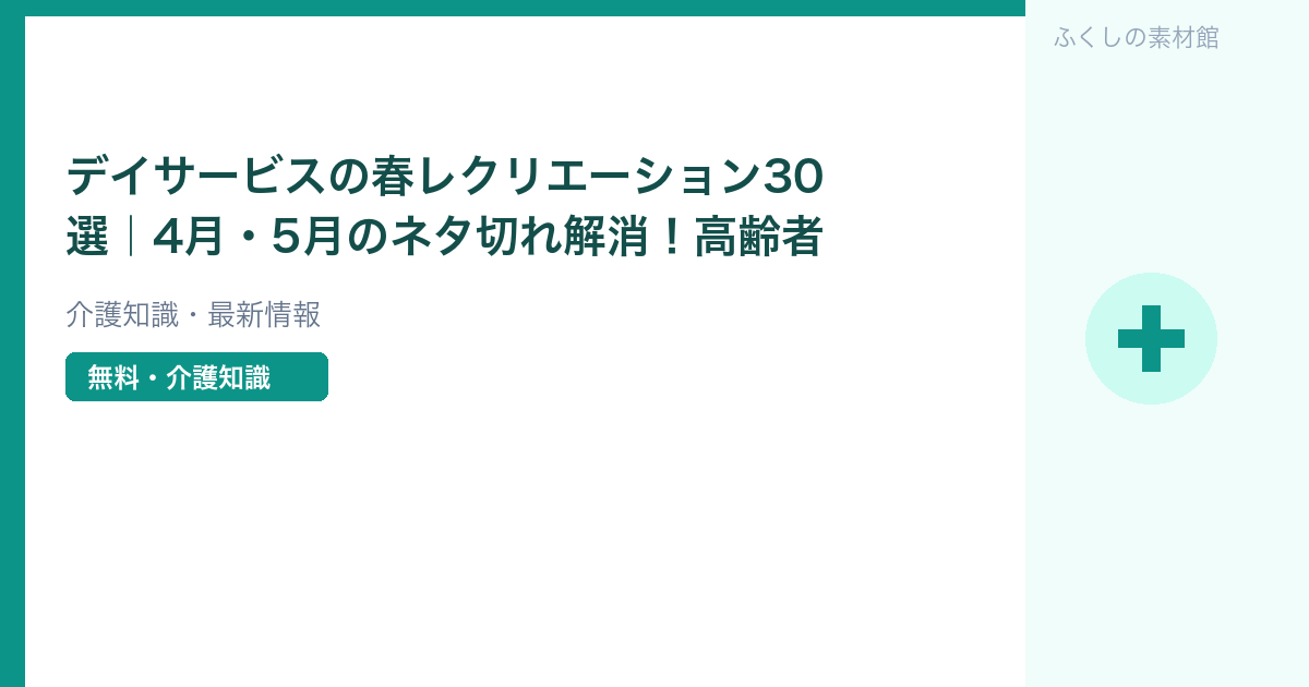 デイサービスにおけるレクリエーションは、単なる「時間つぶし」ではありません。身体機能の維持・向上、認知機能の活性化、社会参加意識の向上など、多くの目的があります。特に春は、気温が上がり外出意欲も高まる季節。桜・新緑・子どもの日・母の日など豊富な季節テーマを活かすことで、利用者さんの「昔の記憶」や「生きがい感」を引き出すことができます。