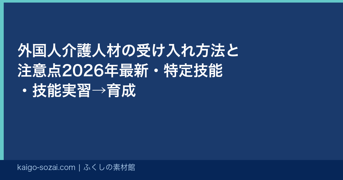 2026年、外国人介護人材の受け入れが急速に拡大しています。EPA・技能実習・特定技能・在留資格「介護」の4つのルートで入国できるようになり、介護現場での外国人職員の割合が増加しています。本記事では各ルートの違いと受け入れ時の注意点を解説します。
