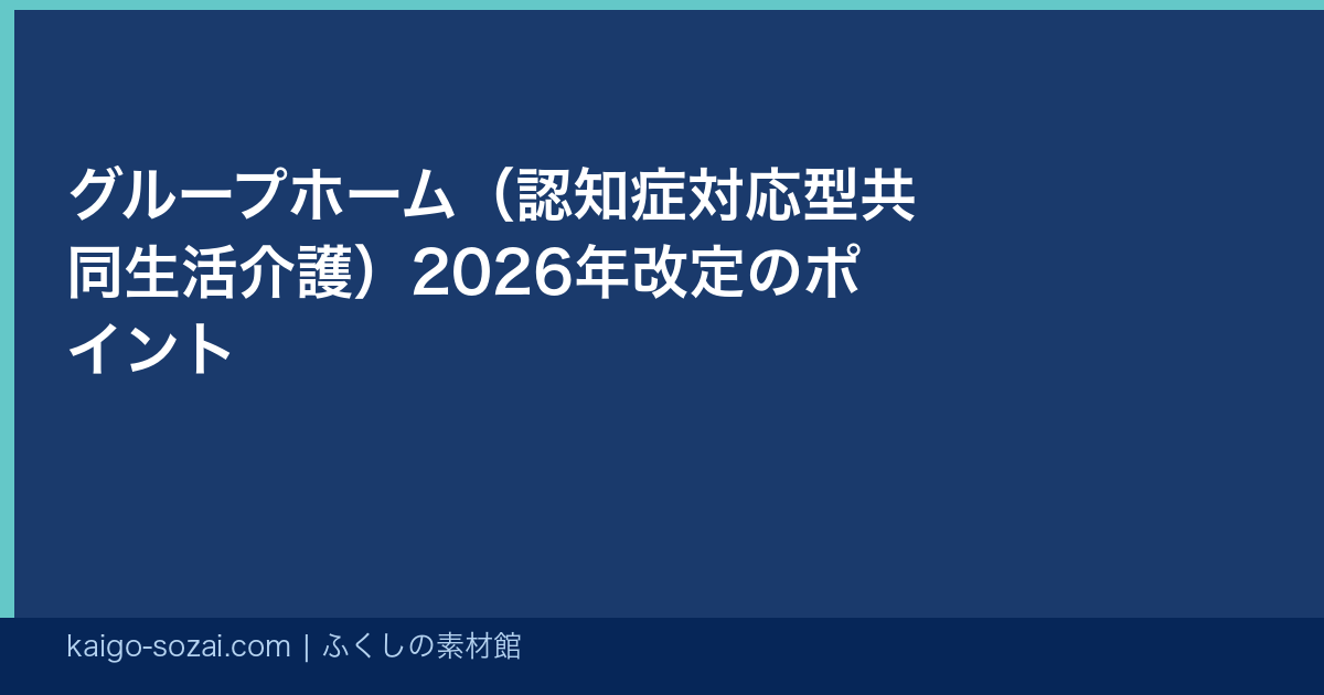 グループホーム(認知症対応型共同生活介護)は、認知症の方が少人数(1ユニット9名以下)で共同生活を送りながら介護を受ける施設です。2026年改定でグループホームに関わる変更点があったため、本記事で解説します。