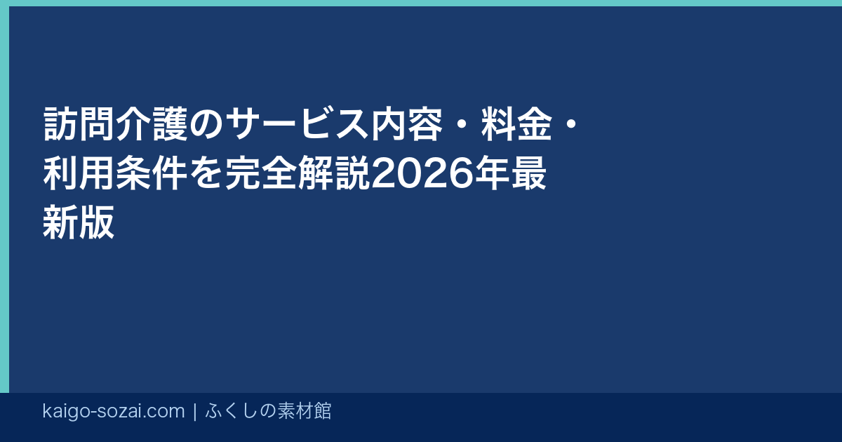 訪問介護はホームヘルパーが利用者の自宅を訪問して介護サービスを提供する制度です。在宅介護の中核を担う重要なサービスですが、サービス内容・料金・利用条件について「よくわからない」という声が多く聞かれます。本記事では訪問介護の基本を網羅的に解説します。