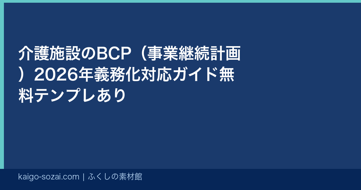 BCP(Business Continuity Plan:事業継続計画)とは、自然災害・感染症まん延・大規模停電などの緊急事態が発生した際に、介護サービスを継続または早期に再開するための計画書です。厚生労働省の指針では「自然災害BCP」と「感染症BCP」の2種類の策定が求められています。