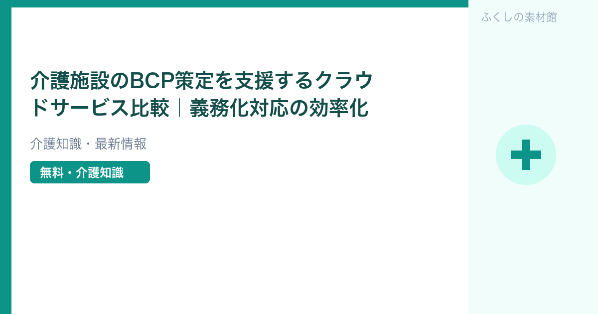 2024年度から介護施設のBCP(業務継続計画)策定が義務化され、「どこから手をつければいいかわからない」という施設長・コンプライアンス担当者が増えています。クラウドサービスを活用すれば、専門知識がなくても効率的にBCPを策定・管理できます。本記事では主要サービスを比較しながら、義務化対応の効率的な進め方を解説します。