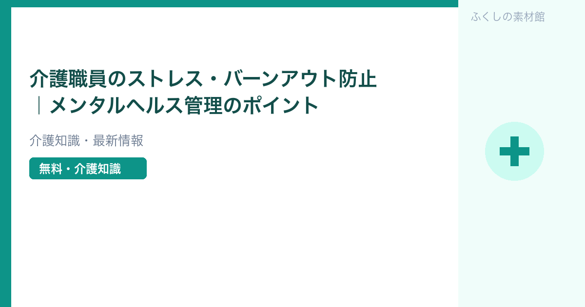 介護職は身体的・精神的な負担が大きく、バーンアウト(燃え尽き症候群)や離職に至るケースが後を絶ちません。職員のメンタルヘルスを守ることは、利用者へのケアの質を維持するためにも不可欠です。