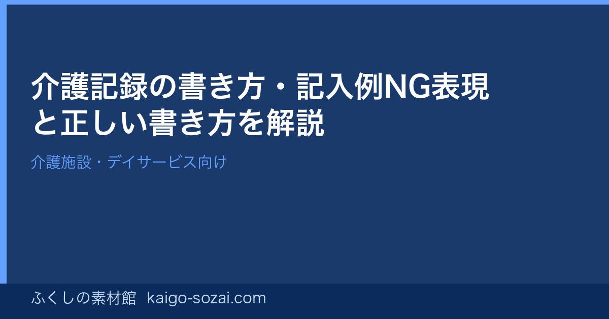 「いつもどおり」「特に問題なし」という記録は情報量がゼロに等しく、NGです。「食事は8割摂取。むせなし。水分200ml摂取」のように具体的な数値と観察内容を記入します。「機嫌が悪い」という主観表現も避け、「発語少なく、声かけに対し首を横に振ることが多かった」と客観的事実で記録します。「転倒しそうになった」は「廊下を歩行中、右足がもつれ壁に手をついた。転倒なし。バイタル確認、異常なし」のように5W1Hで記録することが基本です。