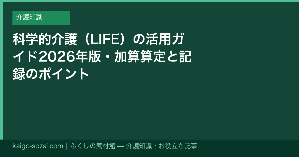 科学的介護情報システム(LIFE)は、介護サービスの質向上と加算算定の両方に活用できる国のシステムです。2024年度改定でさらに対象サービスが拡大し、2026年度もデータ提出・フィードバック活用が加算要件に組み込まれています。本記事では、LIFE対応加算の全体像から現場での運用まで徹底解説します。