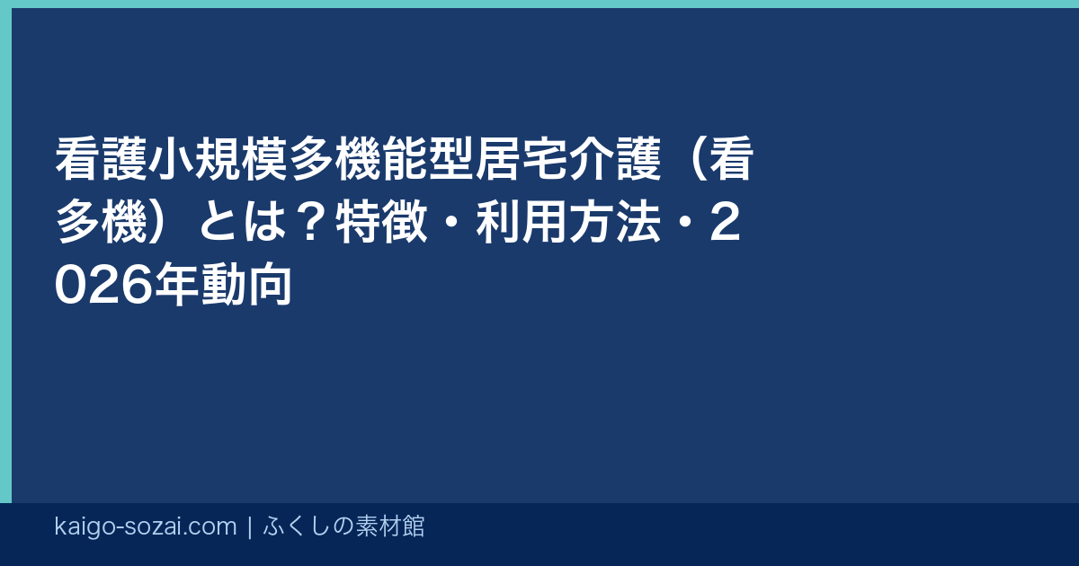 看護小規模多機能型居宅介護(看多機)は、医療ニーズが高い高齢者の在宅生活を支える複合型サービスです。訪問介護・訪問看護・通所(デイ)・泊まり(ショートステイ)を一つの事業所が一体的に提供することが特徴です。本記事で仕組みと活用方法を解説します。
