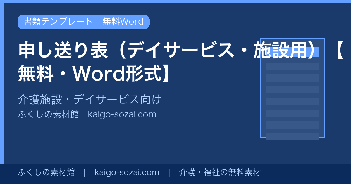 介護施設・デイサービスにおける書類管理は、法令遵守とサービスの質向上に直結します。書類は整理・保管だけでなく、スタッフ間で共有しやすい形式にすることが重要です。本テンプレートを活用することで、記録漏れや記載ミスを防ぎ、業務効率の改善にも役立ちます。定期的に書類の内容を見直し、法改正に合わせて更新することをお勧めします。