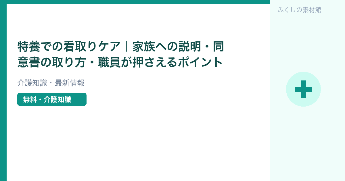 特養での看取りケアは、入居者・家族・職員全員が関わる、施設ケアの集大成ともいえる場面です。事前の意思確認・家族への丁寧な説明・同意書の適切な取得・夜間の観察・職員のメンタルケアまで、チームで取り組む姿勢が何よりも大切です。本記事を参考に、「その人らしい最期」を支えるケアを実践してください。